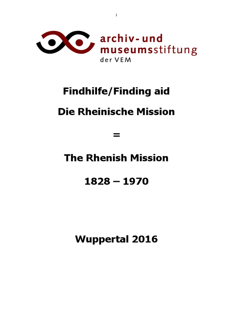 Findhilfe Finding Aid Die Rheinische Mission The Findhilfe Finding